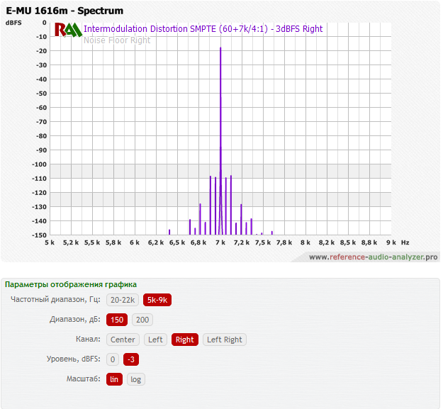 Подробный просмотр интермодуляционных искажений вокруг тона 7 кГц